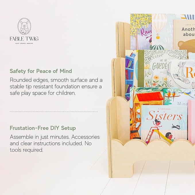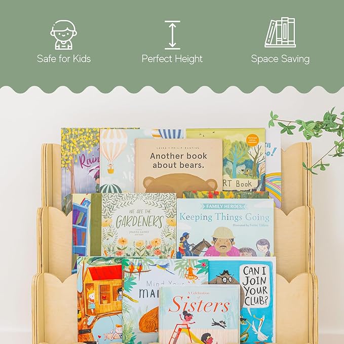 • Displays Covers Rather Than Spines: Every parent knows that sinking feeling of searching through a traditional bookshelf for "the elephant book" while a toddler grows increasingly impatient; Our forward-facing floor bookshelf for kids solves this frustration