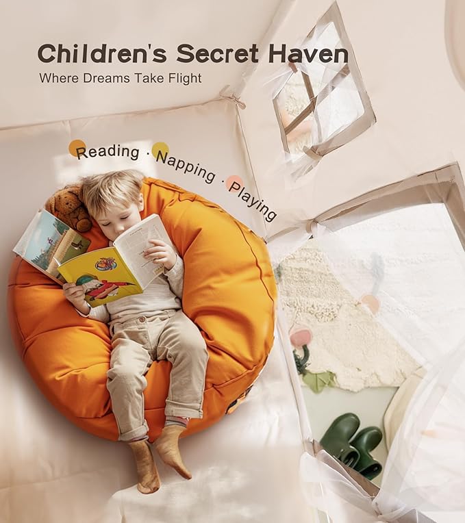 • LARGE SIZE: The play tent is 52x35x52 inches, which provides a large space for kids to play and can accommodate two children at the same time, even adults can enter! Fantasy land for role-playing and reading