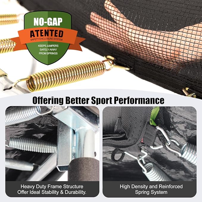 • 【ASTM and CPC Approved & 360-Degree Protective Design】 Safety is our top priority. Our outdoor trampoline for kids has ASTM and CPC approved. All parts of kids trampoline are carefully selected and rigorously tested to ensure durability and safety. 360-degree protective net enclosure, top perforation fasten design, stable connection method and reinforced angle structure prevents kids from falling off, ensuring optimal stability and unmatched durability for play.