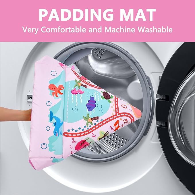 • [Safe and Easy to Clean]: The play mat is made of polyester and cotton and has been tested to be phthalate-free. Soft and safe materials ensure a delightful exploration for babies while protecting them from potential impacts. The non-slip bottom design adds an extra layer of safety. Cleaning is simple—stains can be wiped away directly, keeping the play area tidy and hygienic while saving parents valuable time and energy.