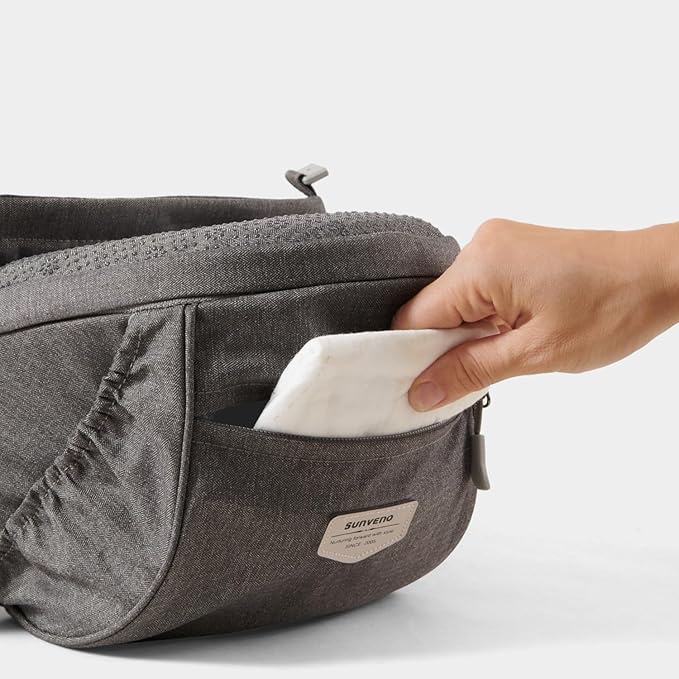 Sunveno Ergonomic Hip Seat Baby Carrier with Detachable Double Shoulder Straps, Waist & Back Relief, Breathable Mesh, Non-Slip Seat + Storage Pockets, Fits Infants & Toddlers 0-36 M up to 45 lbs