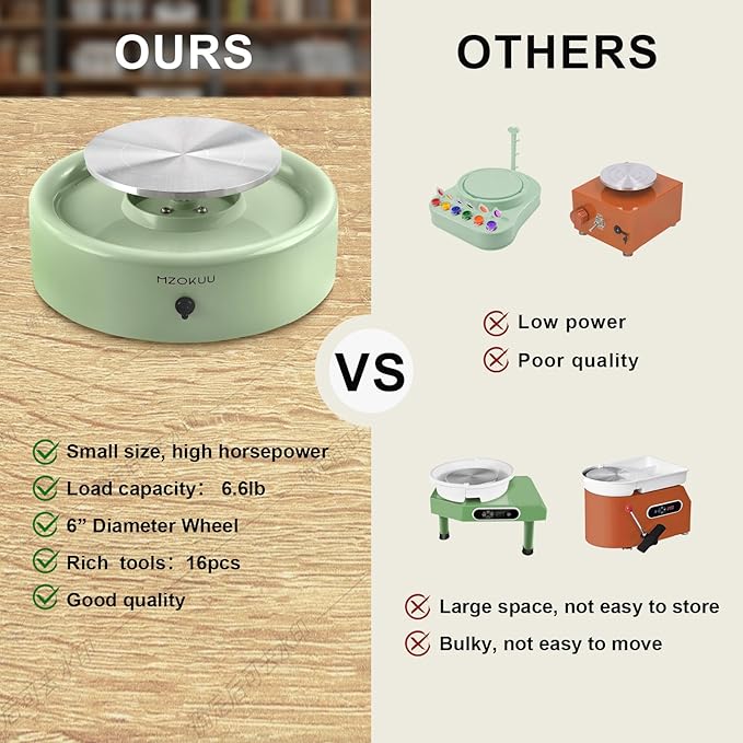 • Powerful Performance: The variable speed electric motor provides stable power rotation, making it suitable for beginners in pottery. The wheel can bear up to 6.6 pounds, meeting different scale creative needs.