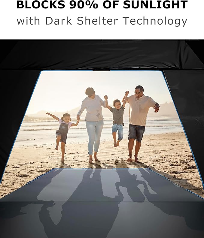 • [High-Quality Dark Shelter Coating Material] Venustas beach tents provide increased sun protection thanks to an innovative dark shelter coating material. With UPF 50+ UVProtection, it successfully blocks 99% of harmful UVA and UVB rays, reducing the risk of sunburn or harm, making it ideal for kids or adults lounging out. This ensures a cooler and more comfortable environment inside the tent.