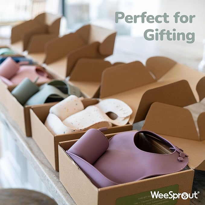 WeeSprout Baby Led Weaning Bundle, Silicone Suction Bowl, Spoons, Bib & Cup, Develops Self Feeding Skills, Dishwasher Safe (Purple)