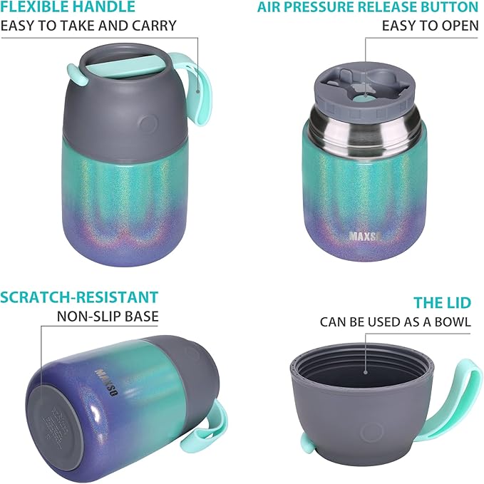 • 【100% Leak-Proof】Airtight, easy to open and generous capacity. Take this Insulated food jar, your storage jars won’t leak in your lunch bag anymore!