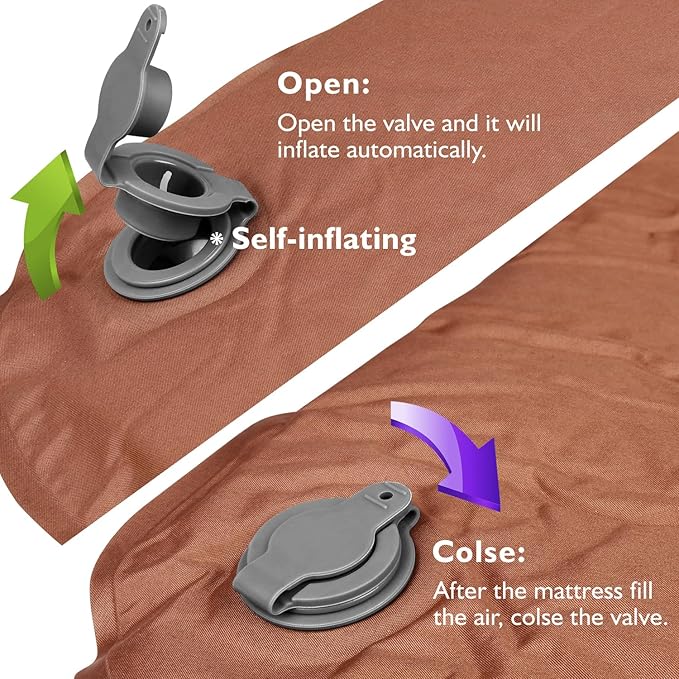 • Self-inflating Design: Free-flow valve inflates the mat with no air pump required.