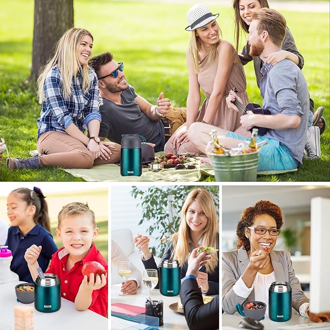 • 【Superior Vacuum Insulation】Keeping your soup hot, it can be an easy thing!!! Durable insulated thermal technology maintains temperatures for longer, interior is constructed entirely of food-grade stainless steel, keeping food hot up to 12 hours or cold for 24. Whether in school or in the office, you can always enjoy hot food and soup during lunch time! It is suitable for babies, toddlers, children, girls, boys, adults and the elderly, perfect for school, office, travel, camping, gym, home.