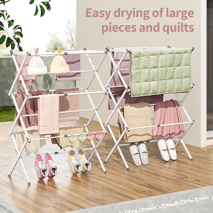 • Material: The APEXCHASER clothes drying rack is made of all metal and has a rust-resistant coating, which can endure different weathers for indoor and outdoor use, making it perfect for apartments or small living spaces.