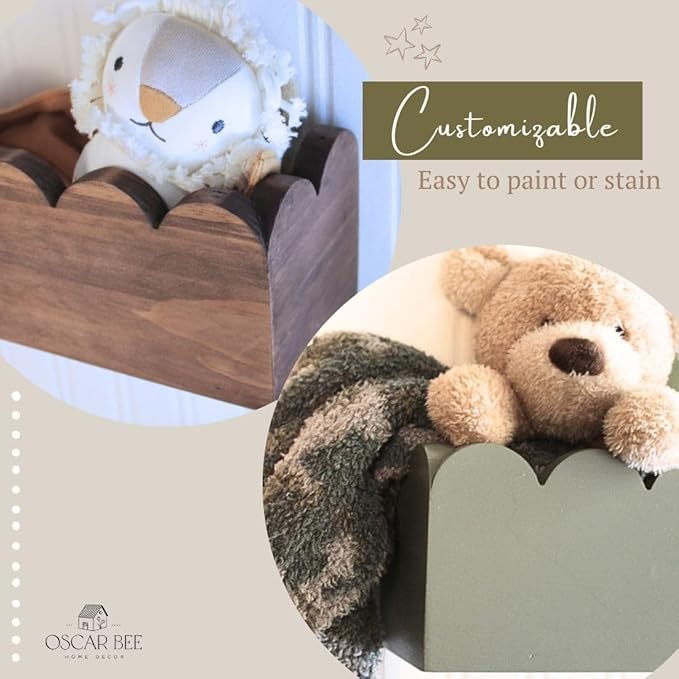 • ๐—–๐˜‚๐˜€๐˜๐—ผ๐—บ๐—ถ๐˜‡๐—ฒ ๐˜๐—ผ ๐—ฌ๐—ผ๐˜‚๐—ฟ ๐—ก๐˜‚๐—ฟ๐˜€๐—ฒ๐—ฟ๐˜†: Featuring a reversible scalloped design, this kids wall bookshelf fits perfectly in baby rooms, whether as traditional nursery shelves for wall or floating book shelves for wall nursery. Easily customize for girls room shelves, nursery bookshelf wall, or shelves for nursery girl or boy themes