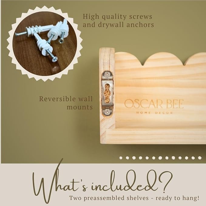• ๐—ฆ๐—ฒ๐—ฎ๐—บ๐—น๐—ฒ๐˜€๐˜€ ๐——๐—ฒ๐˜€๐—ถ๐—ด๐—ป ๐—œ๐—ป๐˜๐—ฒ๐—ด๐—ฟ๐—ฎ๐˜๐—ถ๐—ผ๐—ป: Ideal for cohesive decor, these nursery shelves for books can be styled as wall book shelf for kids rooms, floating nursery book shelves, or white scalloped shelves. Their universal appeal suits shelves for kids bedroom, book shelf nursery, or wall shelves nursery setups