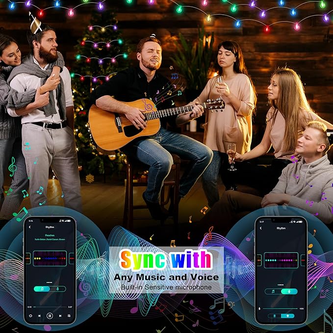 • Sync with Music & Voice:With built-in sensitive microphone, the color changing string lights sync to music and follow the voice rhythm, creating a romantic, carnival, or warm, relaxing atmosphere and a dreamy world.
