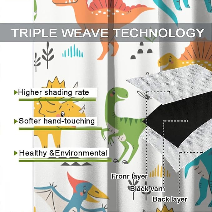 Kids Dinosaur Curtains for Boys Girls Bedroom Decor Cartoon Dino Colorful Cute Funny Animal Wildlife Printed Blackout Rod Pocket Window Drapes for Baby Nursery Playroom W27.5xL63in 2 Panels