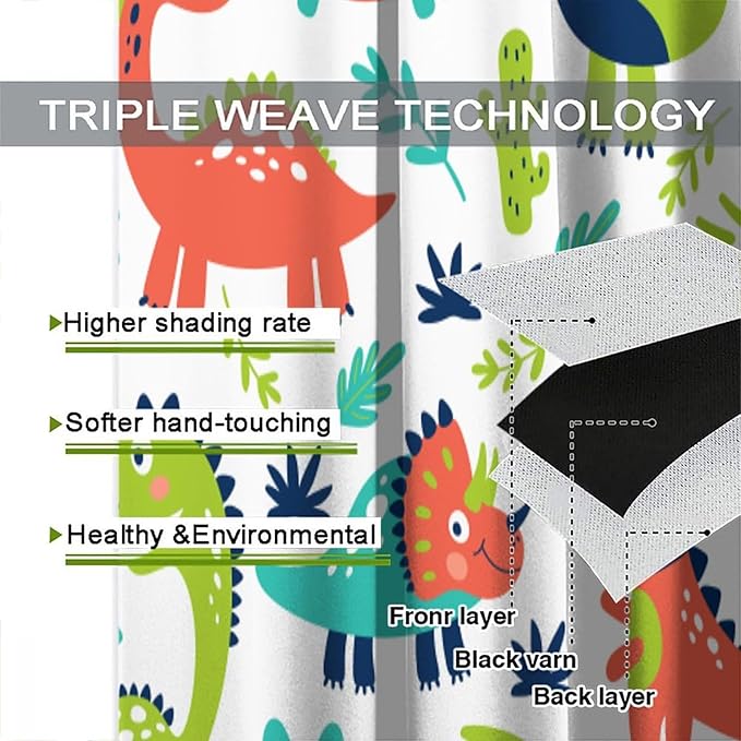 Rustic Dinosaurs Curtains Colorful Dino Kids Boys Cartoon Cute Cool Funny Decor Printed Blackout Rod Pocket Window Drapes for Living Room Bedroom W21xL63in 2 Panels