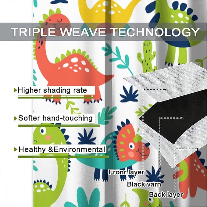 Rustic Dinosaurs Curtains Colorful Dino Kids Boys Cartoon Cute Cool Funny Decor Printed Blackout Rod Pocket Window Drapes for Living Room Bedroom W31.5xL72in 2 Panels