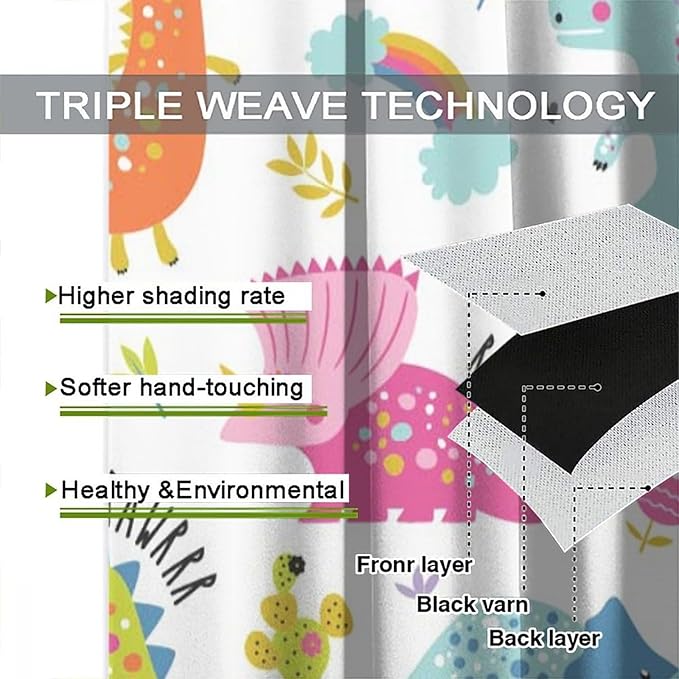 Cartoon Dinosaur Curtains for Kids Boys Girls Home Decor Childish Cute Dino Animals Print Pattern Rod Pocket Blackout Window Drapes for Nursery Baby Bedroom Playroom W27.5xL63in 2 Panels