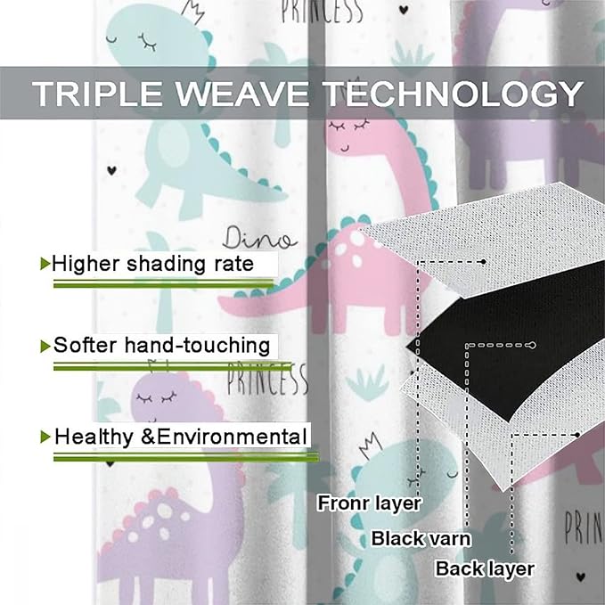 Kids Dinosaur Curtains for Boys Girls Bedroom Decor Cartoon Dino Colorful Cute Funny Animal Wildlife Printed Blackout Rod Pocket Window Drapes for Baby Nursery Playroom W27.5xL63in 2 Panels