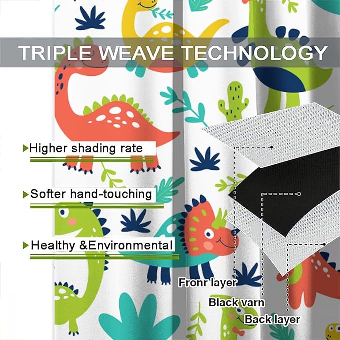 Rustic Dinosaurs Curtains Colorful Dino Kids Boys Cartoon Cute Cool Funny Decor Printed Blackout Rod Pocket Window Drapes for Living Room Bedroom W21xL45in 2 Panels