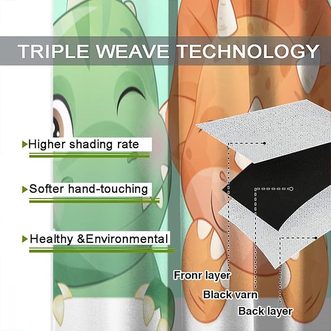 Kids Dinosaur Curtains for Boys Girls Bedroom Decor Cartoon Dino Colorful Cute Funny Animal Printed Blackout Rod Pocket Window Drapes for Baby Nursery Playroom Living Room W31.5xL63in 2 Panels