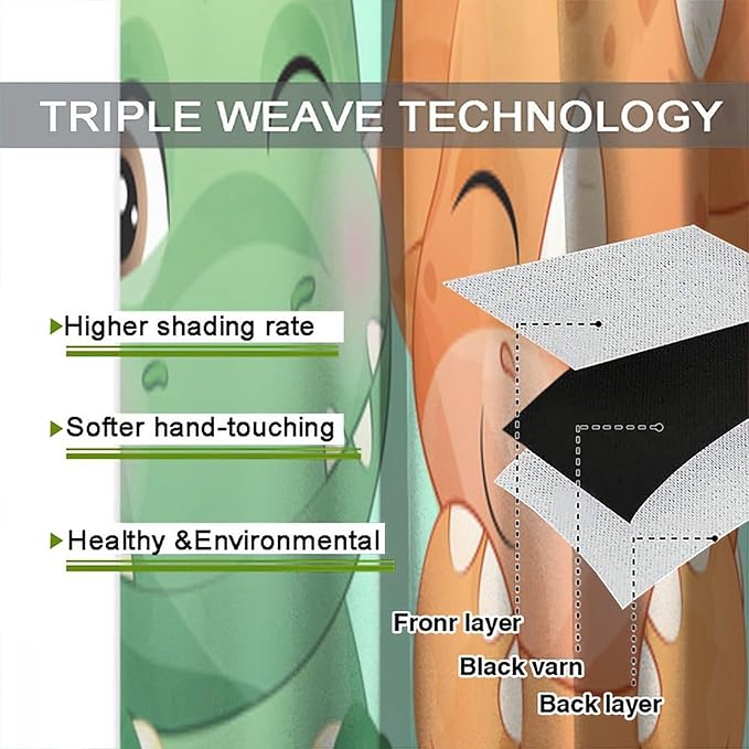 Kids Dinosaur Curtains for Boys Girls Bedroom Decor Cartoon Dino Colorful Cute Funny Animal Printed Blackout Rod Pocket Window Drapes for Baby Nursery Playroom Living Room W21xL63in 2 Panels