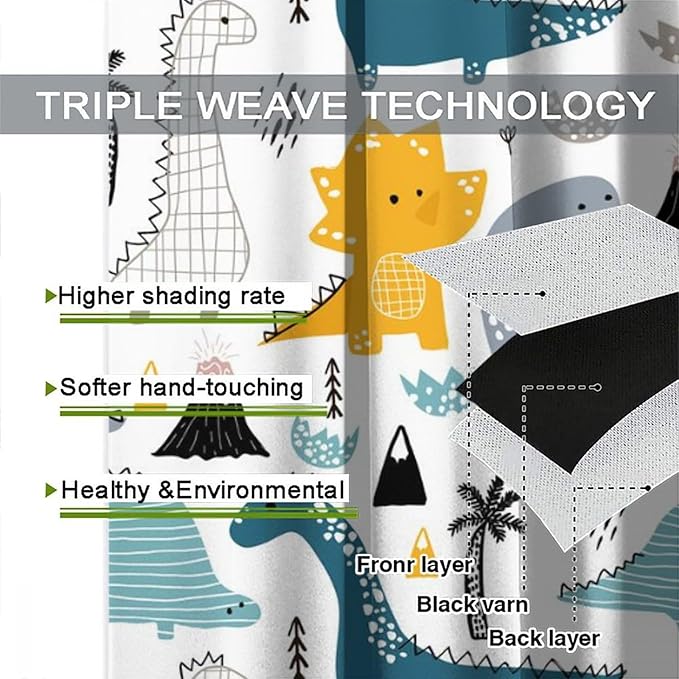 Kids Dinosaur Curtains for Boys Girls Bedroom Decor Cartoon Dino Colorful Cute Funny Wildlife Animal Printed Blackout Rod Pocket Window Drapes for Baby Nursery Playroom Living Room W21xL45in 2 Panels