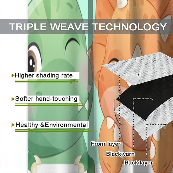 Kids Dinosaur Curtains for Boys Girls Bedroom Decor Cartoon Dino Colorful Cute Funny Animal Printed Blackout Rod Pocket Window Drapes for Baby Nursery Playroom Living Room W31.5xL72in 2 Panels