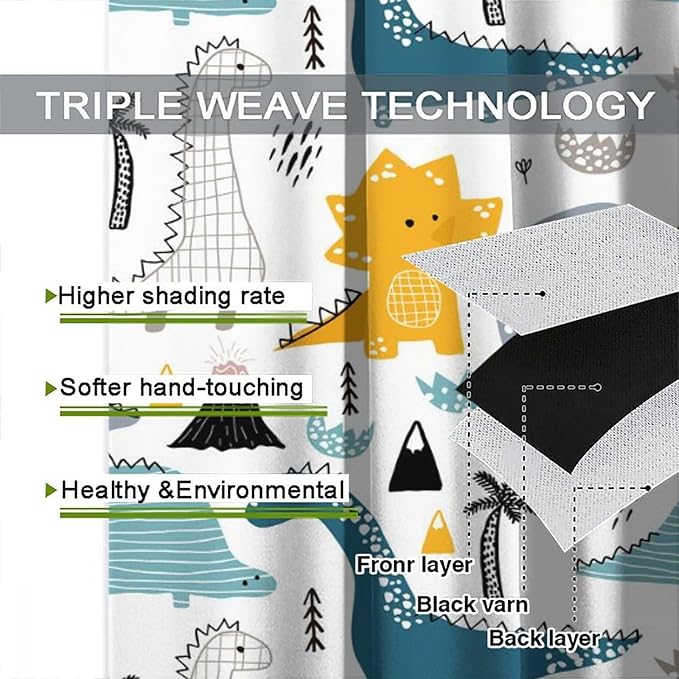 Kids Dinosaur Curtains for Boys Girls Bedroom Decor Cartoon Dino Colorful Cute Funny Wildlife Animal Printed Blackout Rod Pocket Window Drapes for Baby Nursery Playroom Living Room W36xL63in 2 Panels