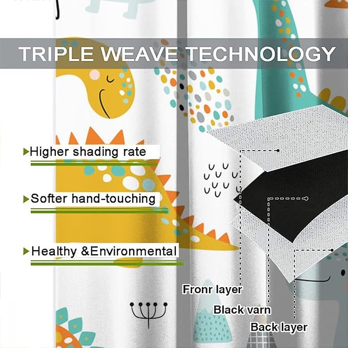 Dinosaur Curtains for Kids Boys Girls Home Decor Childish Cute Dino Animals Print Pattern Rod Pocket Blackout Window Drapes for Nursery Baby Bedroom Playroom W21xL45in 2 Panels