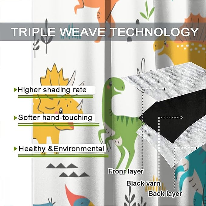 Kids Dinosaur Curtains for Boys Girls Bedroom Decor Cartoon Dino Colorful Cute Funny Animal Wildlife Printed Blackout Rod Pocket Window Drapes for Baby Nursery Playroom Living Room W21xL63in 2 Panels