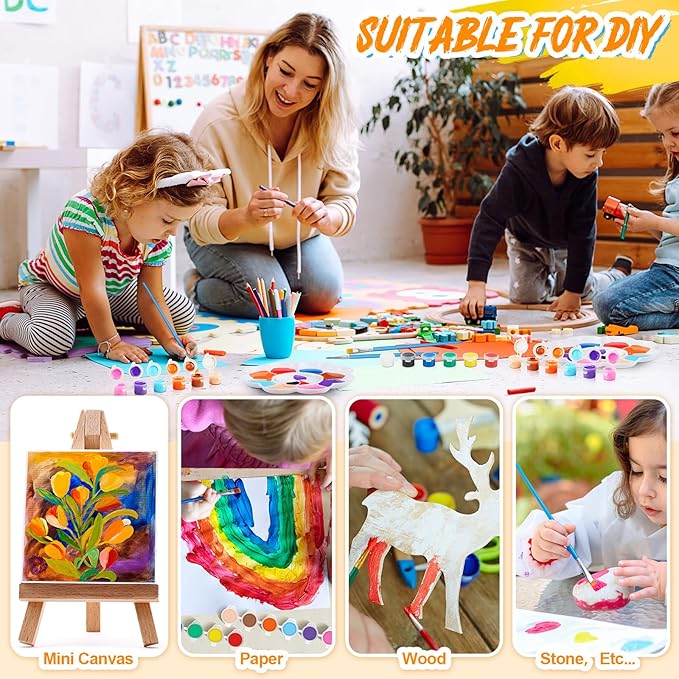 • Wide Applications: the mini acrylic paint set has a wide range of occasions to use, such as classroom, homeschooling, painting class, kindergarten, club, art display, game, graffiti, painting party, birthday party, children's party and more