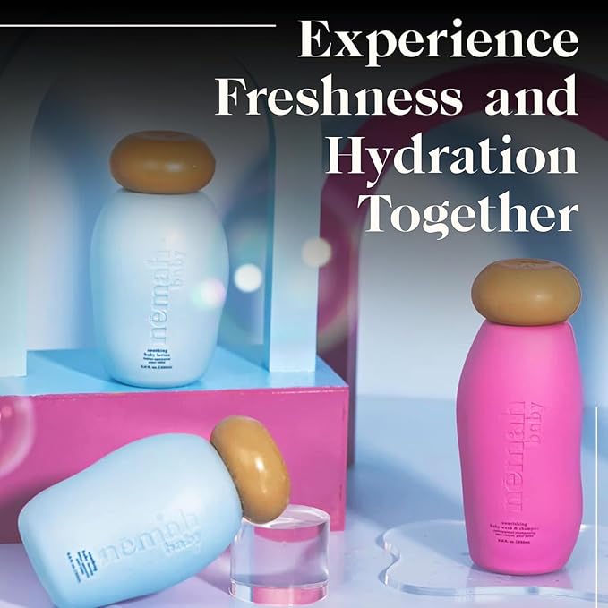 • The Nurturing Baby Care Duo - Transform baby bath time into a loving experience for your little one with the Soothing 2-in-1 Baby Body Wash & Shampoo & Calming Baby Body Lotion bundle from Nēmah. With our baby products, your baby receives only the hygienic pampering care they deserve.