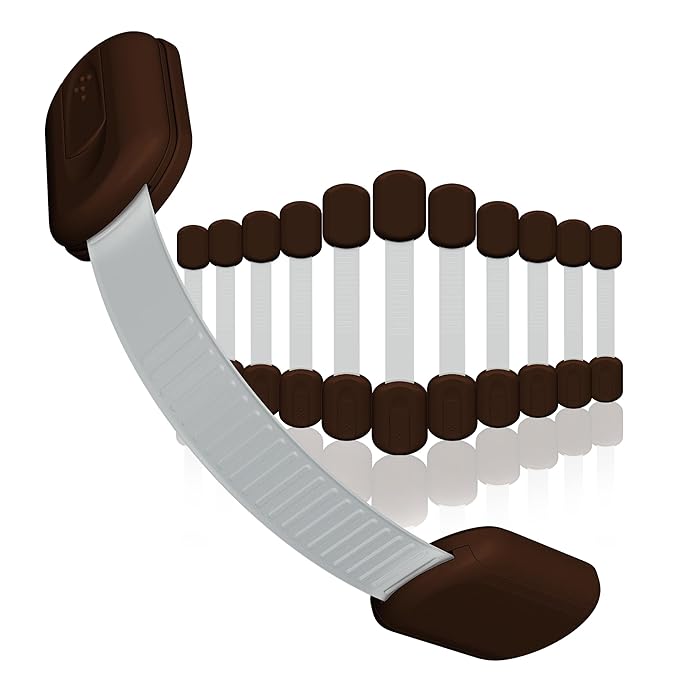 • What You Get: 12 multi-purpose cabinet locks that has a high grade 3M adhesive. Flexible strap means you can bend around items from toilet seats to fridges