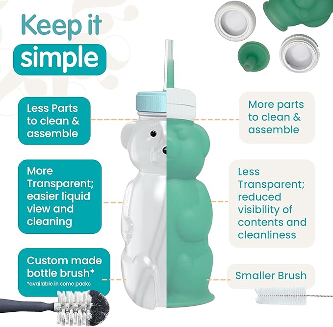 • Convenient Bottle Cleaner: Our straw training cups for babies come with a newly designed bottle brush featuring a replaceable head (sold separately). The compact and non-slip silicone handle makes cleaning these squeezable straw cups a breeze.