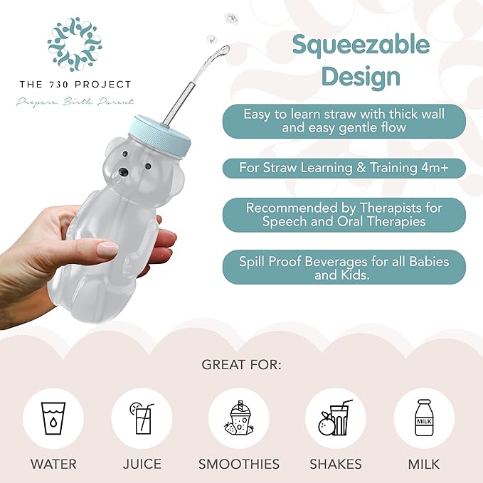 • Approved by professionals: Our bear sippy cup with gentle flow straws is ideal for straw learning for babies 4 months+, as well as for speech therapy use for children 18 months+. (*Consult your doctor or specialist for therapeutic applications.)