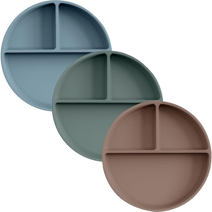 Moonkie Suction Plates for Baby | 100% Silicone BPA-Free Baby Plates| Divided Design | Microwave and Dishwasher Safe | Toddler Plates 3 Pack