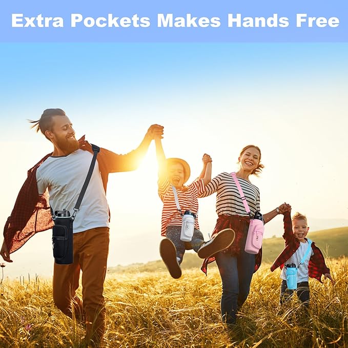Water Bottle Holder with Strap for Hydroflask 32oz 40oz, Carrier Sling Bag with Phone Pocket Sleeve for Men Women Hiking Camping Travelling