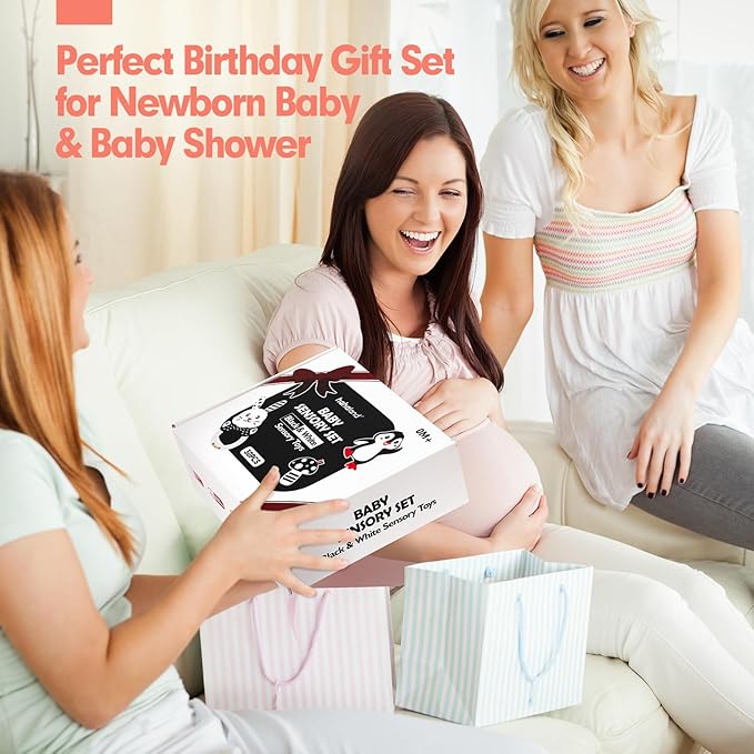 • Portable Entertainment: Lightweight and portable, our sensory toys ensure on-the-go entertainment for your little one. Perfect for tummy time activities and travel, these black and white baby toys make an ideal baby shower gift for both boys and girls