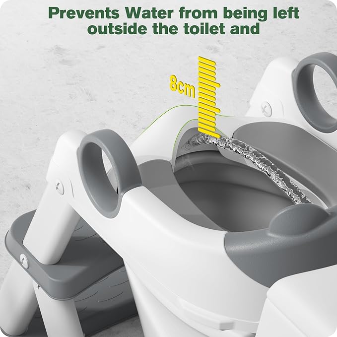• Soft PU Cushion : Our potty training seat with step stool comes equipped with a waterproof PU seat cushion that is soft to the touch, providing protection for children's sensitive skin. It also remains comfortable to use during winter months without feeling cold.