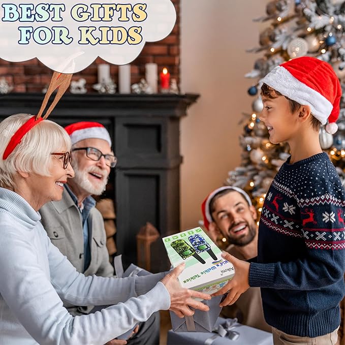• PERFECT GIFTS FOR BOYS AND GIRLS: These walkie talkies for kids are the ideal gift for any child. With their compact size, great sound, long range, and extended battery life, they are both convenient and easy to use. Whether it's for a birthday, Christmas or any other holiday, these walkie talkies are sure to be a hit with your kid, nephew, grandchild, or your friends' children