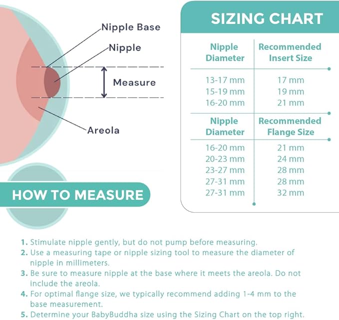 • FLANGE FIT MATTERS FOR COMFORT AND RESULTS: A properly sized flange is essential to ensure effective suction and prevent nipple pain or milk flow issues. Our 22–24mm flange range is designed for a close, secure fit to support consistent output and maximize comfort. Always measure your nipple before use—correct flange sizing improves pumping efficiency and protects sensitive tissue, making each session more productive and less stressful for new moms.