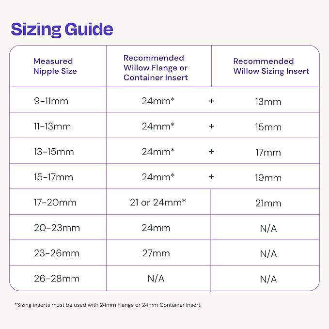 • Find Your Perfect Fit: Flanges are available in 3 sizes: 21mm, 24mm, and 27mm; Reference Willow's size chart to determine your size for an optimal pumping experience