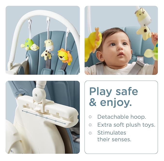 • Childhood Joy: comes with a free high chair toys arch, the position and angle of the toys arch can be adjusted at will, and individual toys can be easily disassembled. so your little one will never get bored, this perfect baby high chair is cute and fun for bebe. (Please note: Due to manufacturing updates, toys on the toy arch may vary between detachable or fixed designs by batch. )