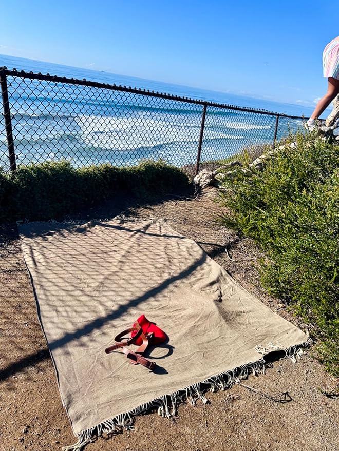 • High-Quality Materials: The surface of our mat is made of cashmere imitation material, providing a soft and luxurious feel while remaining durable and easy to clean. The back is also waterproof and sand resistant, ensuring a clean and enjoyable experience.