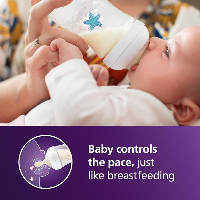 • Philips Avent Natural bottle supporting your baby's natural drinking rhythm: baby controls the pace of the milk flow, just like breastfeeding