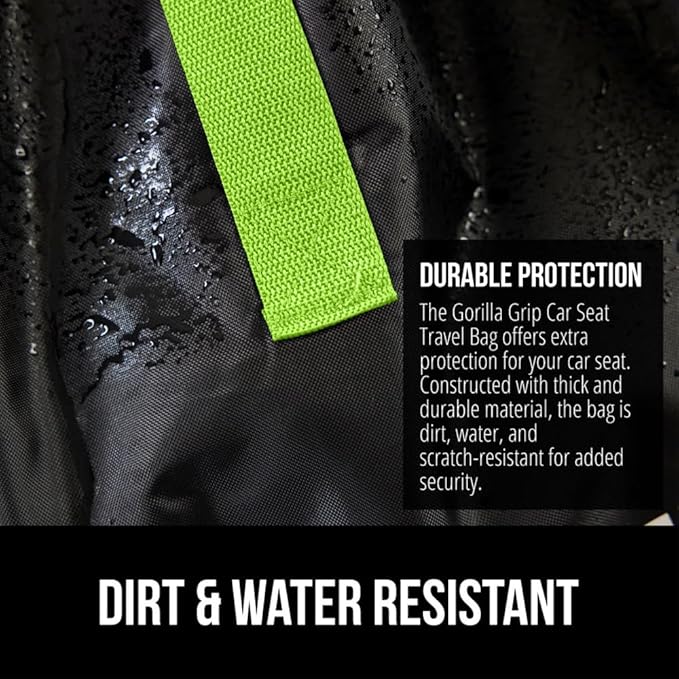 • DURABLE PROTECTION FOR YOUR CAR SEAT: a must for traveling, the Gorilla Grip Car Seat Travel Bag is designed to help protect your car seat while you travel; bag is water, tear and dirt resistant; features drawstring closure that tightly closes around the car seat, helping to protect from dirt, grime and moisture; bag is made of lightweight, yet durable material that can be machine washed​