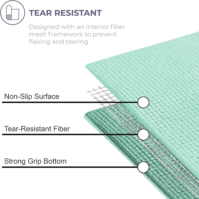• Non-Slip: The fitness mat features a textured surface for stability and balance when changing or maintaining poses; created with an interior fiber mesh layer to reduce mat stretch and resist tears for longevity
