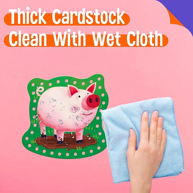 • Cute Patterns & Smart Designs: The pattern covers diverse farm animals, like cow, duck, rooster, hen, owl, sheep, monkey, frog and horse. The illustrations on cards are big, vivid and vibrant. The holes are clearly cut and easy for preschoolers to work with. The strings are easy for children to use and fit into the holes easily.