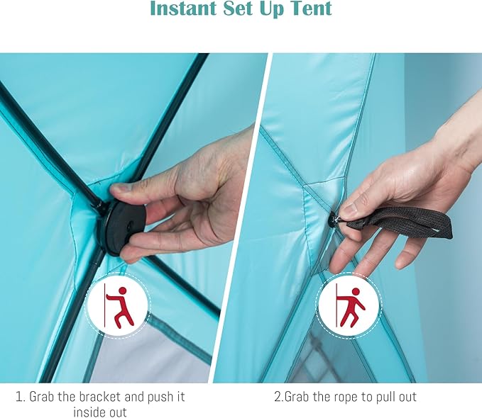 • Enough Height and Spacious Space: The beach tent with its 62" elevated height, offering good vision. With dimensions of 81"L x 54.99"W x 62"H, enough accommodating up to 4-5 people on the beach.