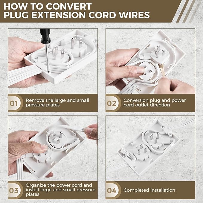 • 【ELEVATE YOUR SPACE】Effortlessly hide power strips and cords with our sleek outlet cover extension cord.Even if your outlet was installed upside-down (ground-pin above the blades), you can reconfigure this product's low-profile plug, entirely hidden behind the cover-plate, as you desire.