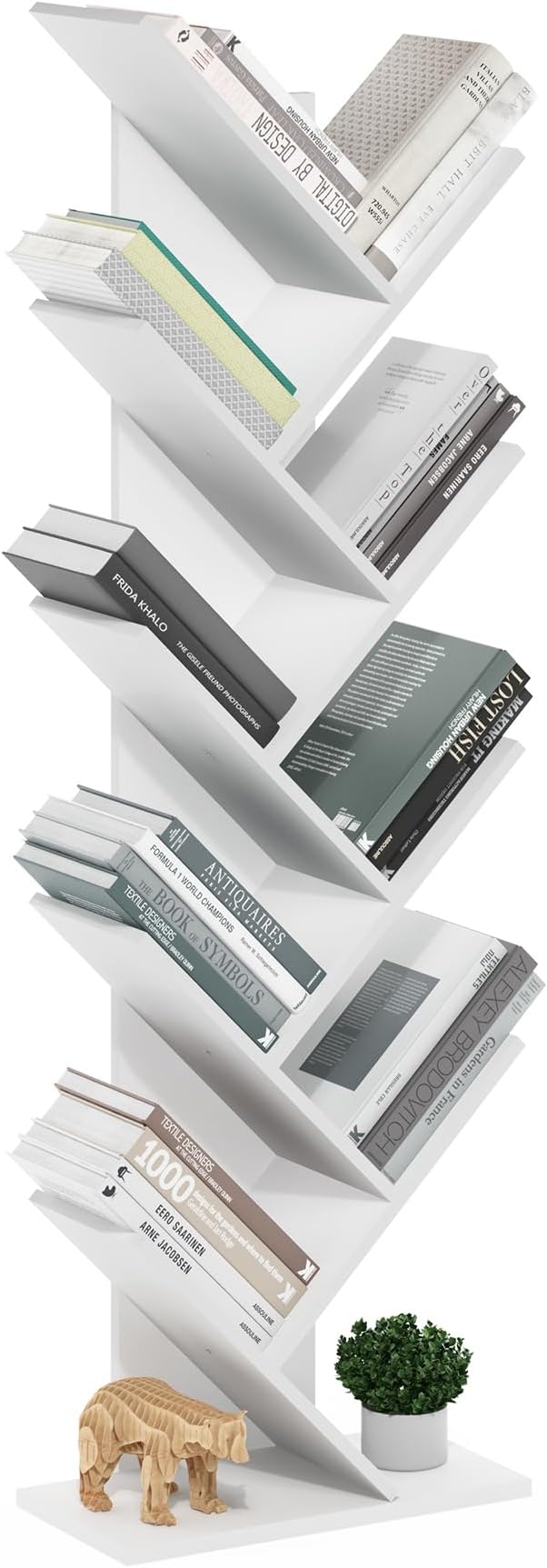 • Unique and modern bookshelf with a tree design, this bookshelf features 9 tiers to accommodate plenty of your book collections.