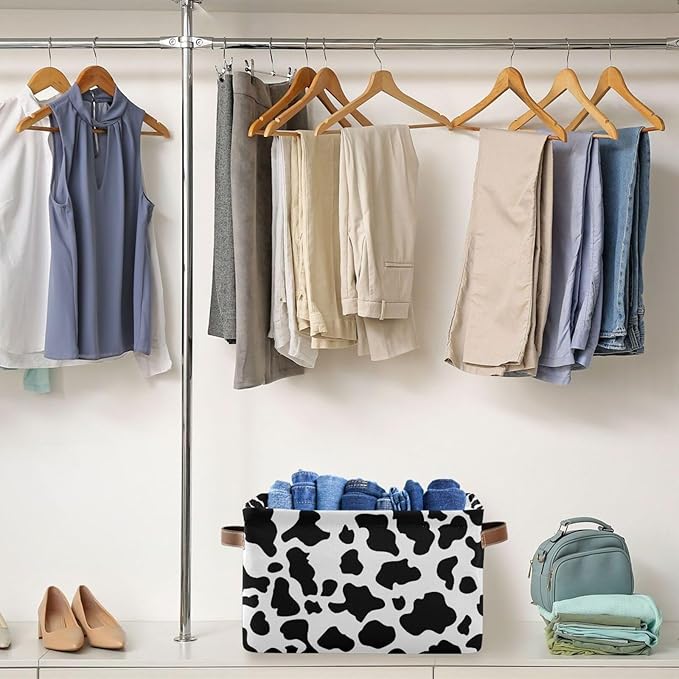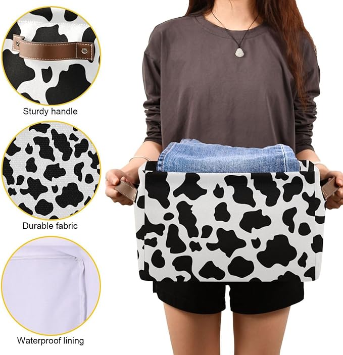 Black White Cow Skin Print Storage Basket Cube Storage Bins Organizer Bag Collapsible Closet Shelf Baskets with handle for Baby Cloth Pet Toy Book 14.2×10.2×8.3 IN